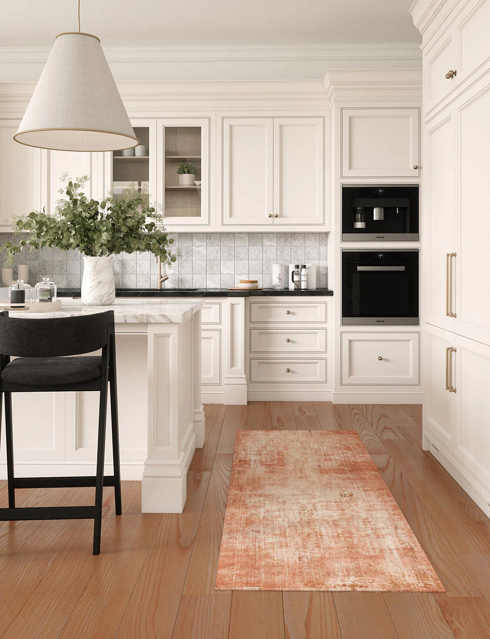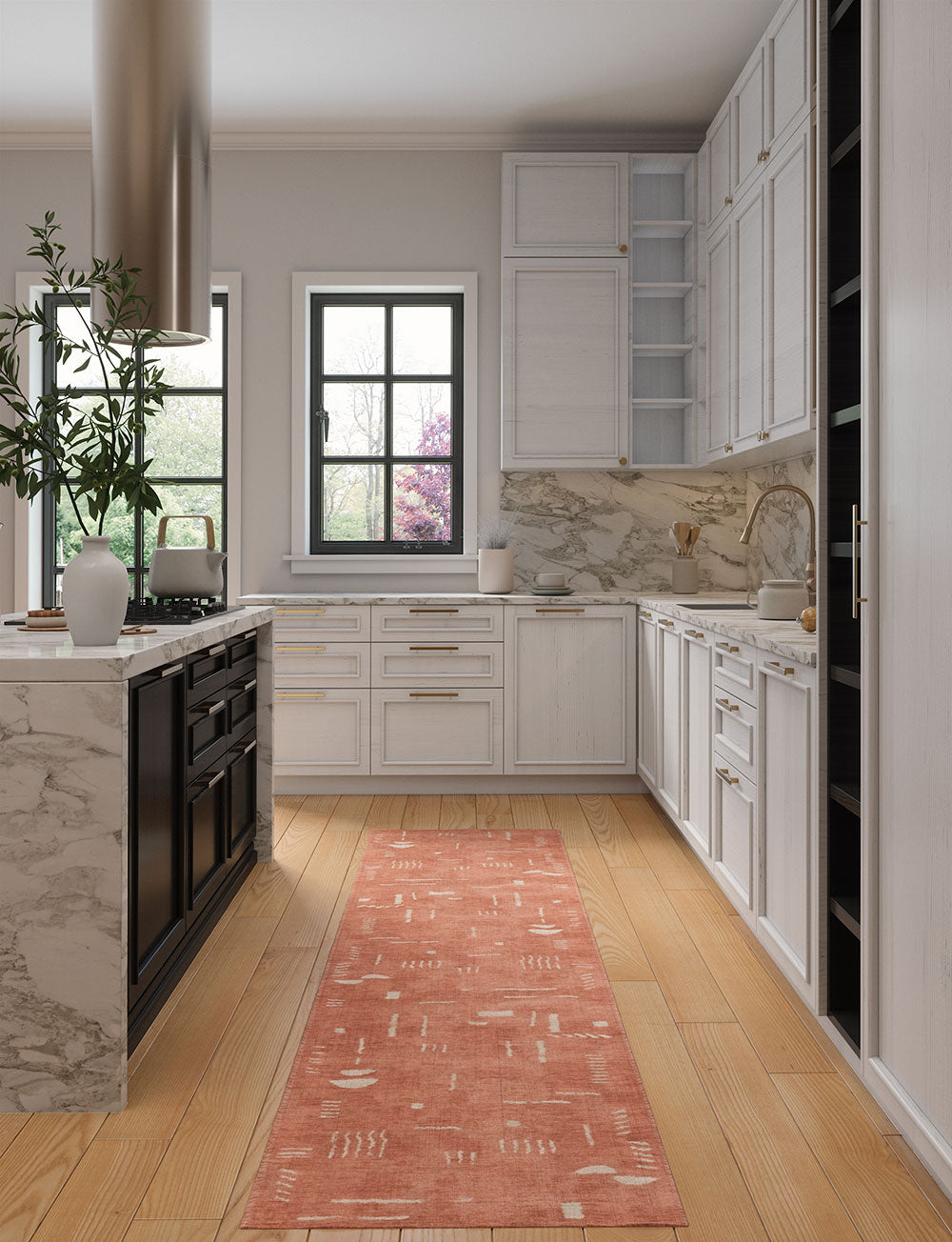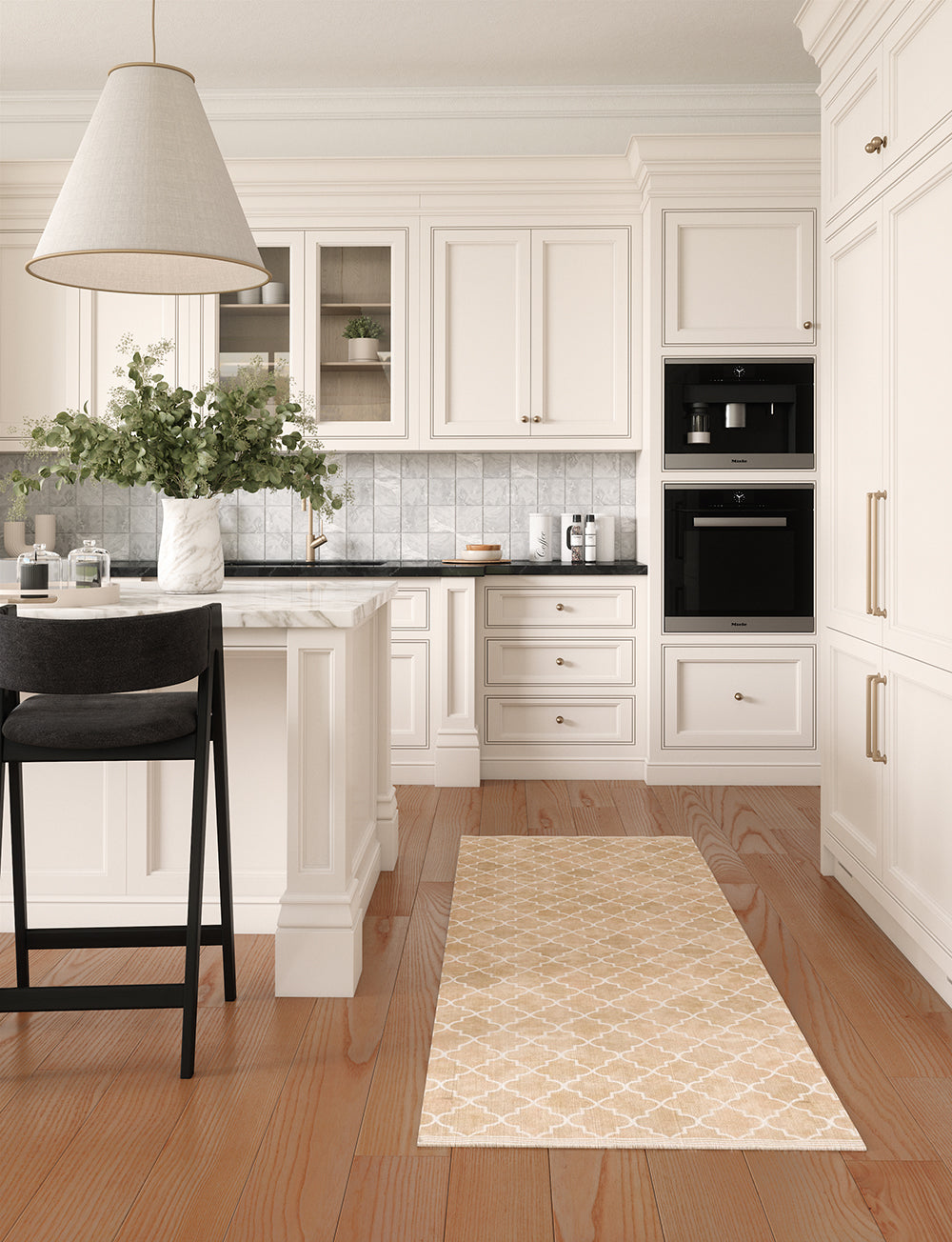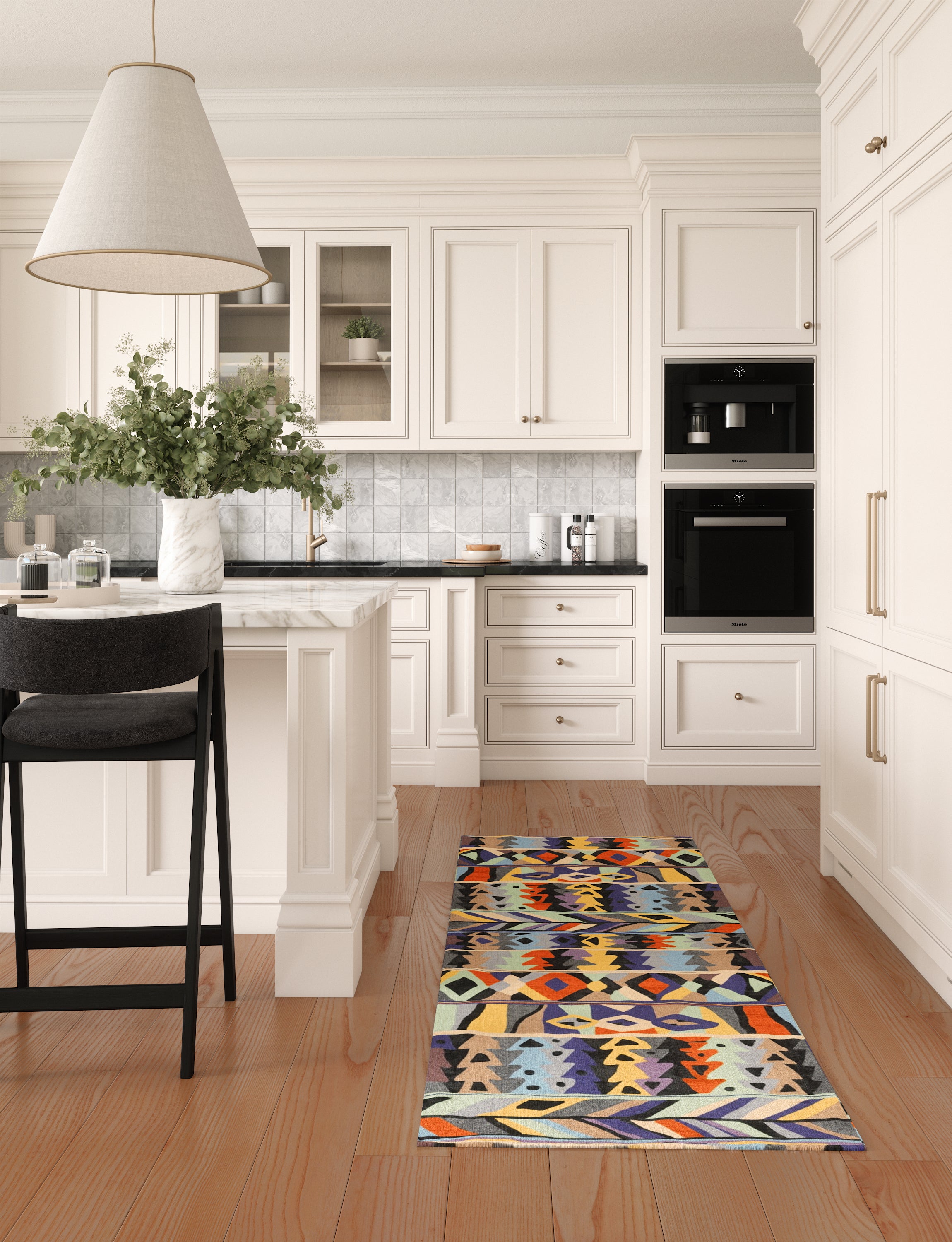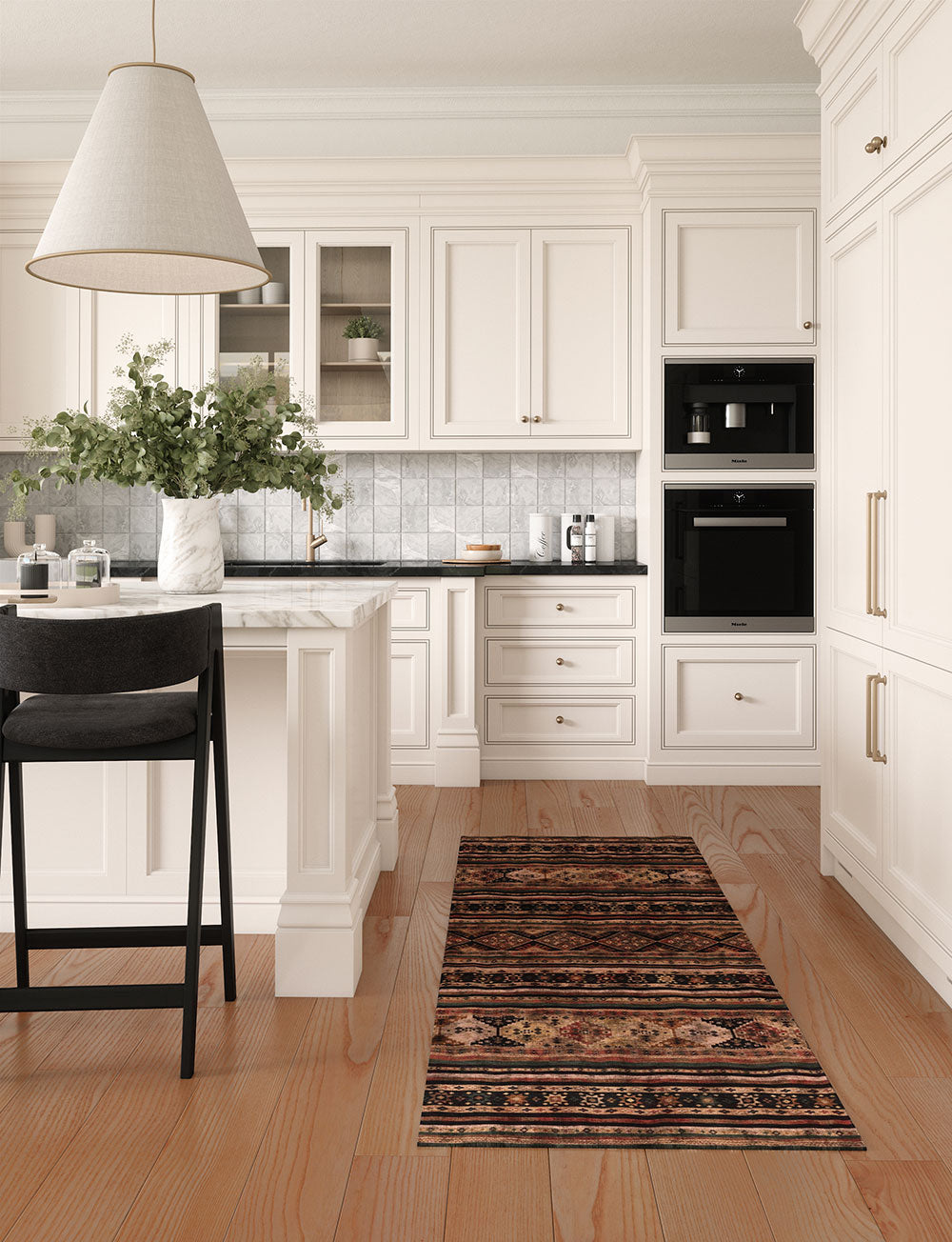 Kitchen: Enhance your medium or large kitchen by placing the rug in front of the sink or on either side of the kitchen island. You can also use it beneath smaller tables in your kitchen dining area for a delightful touch.
