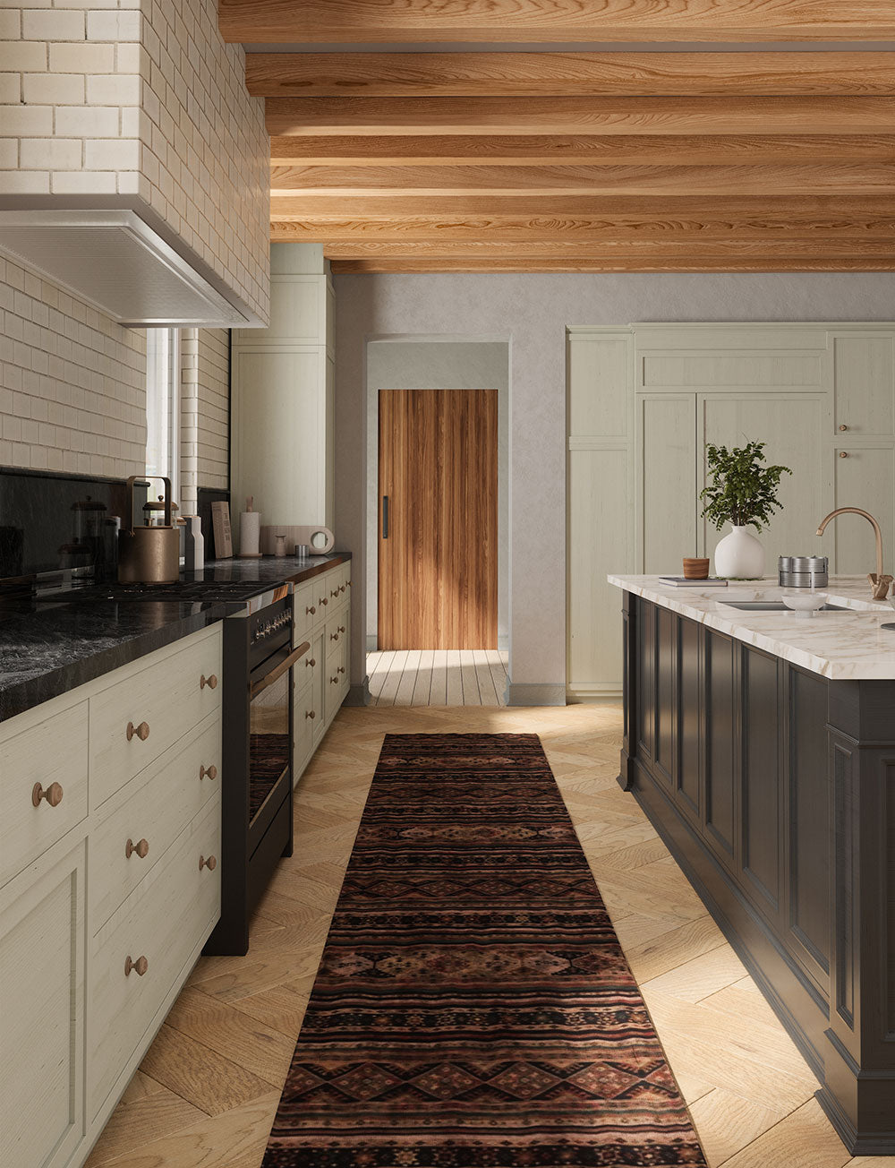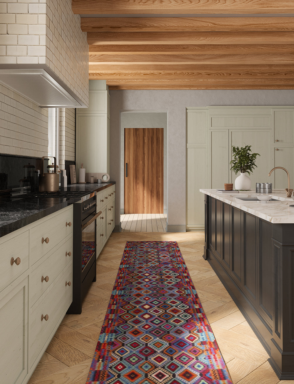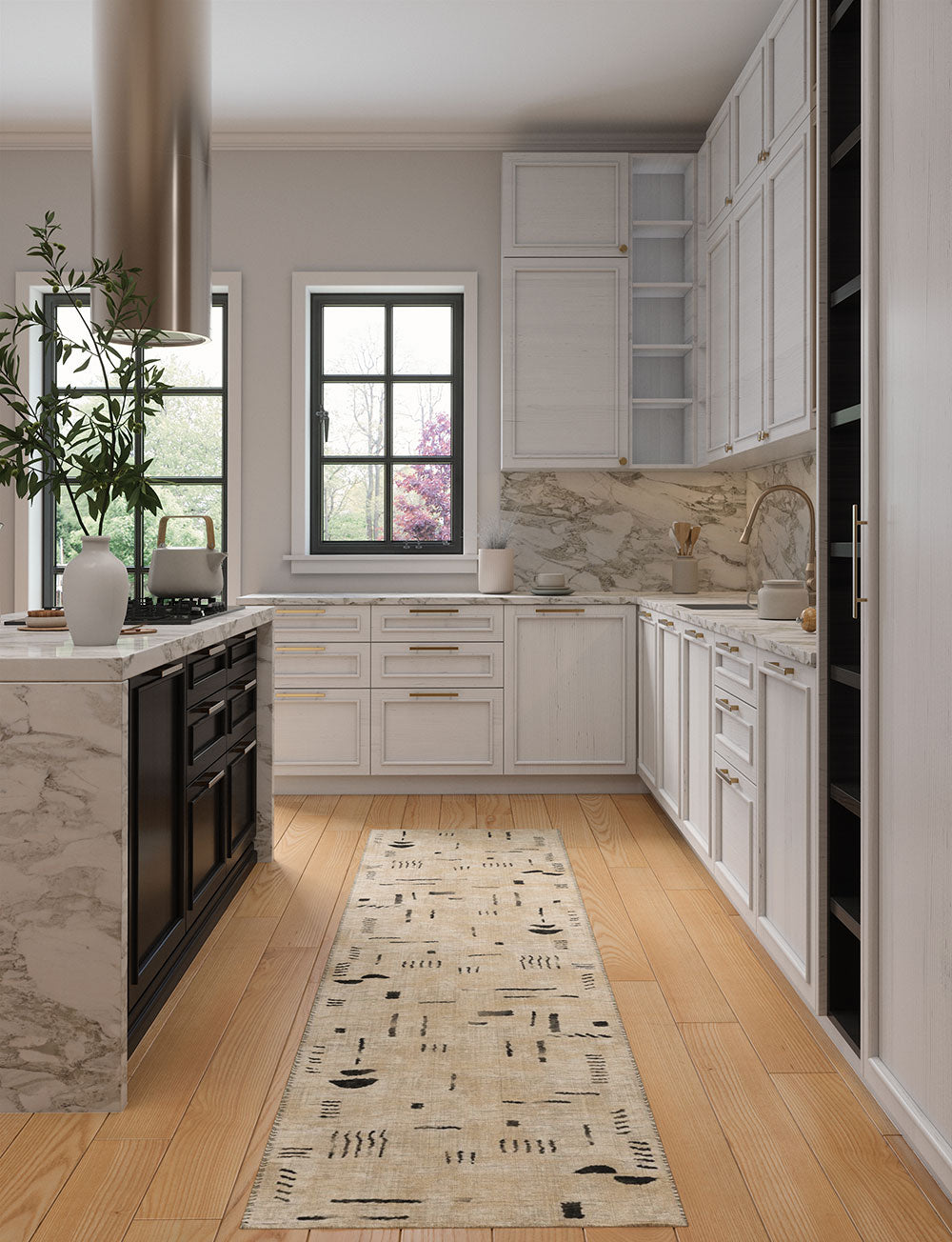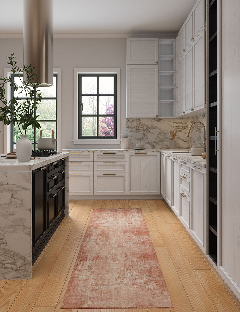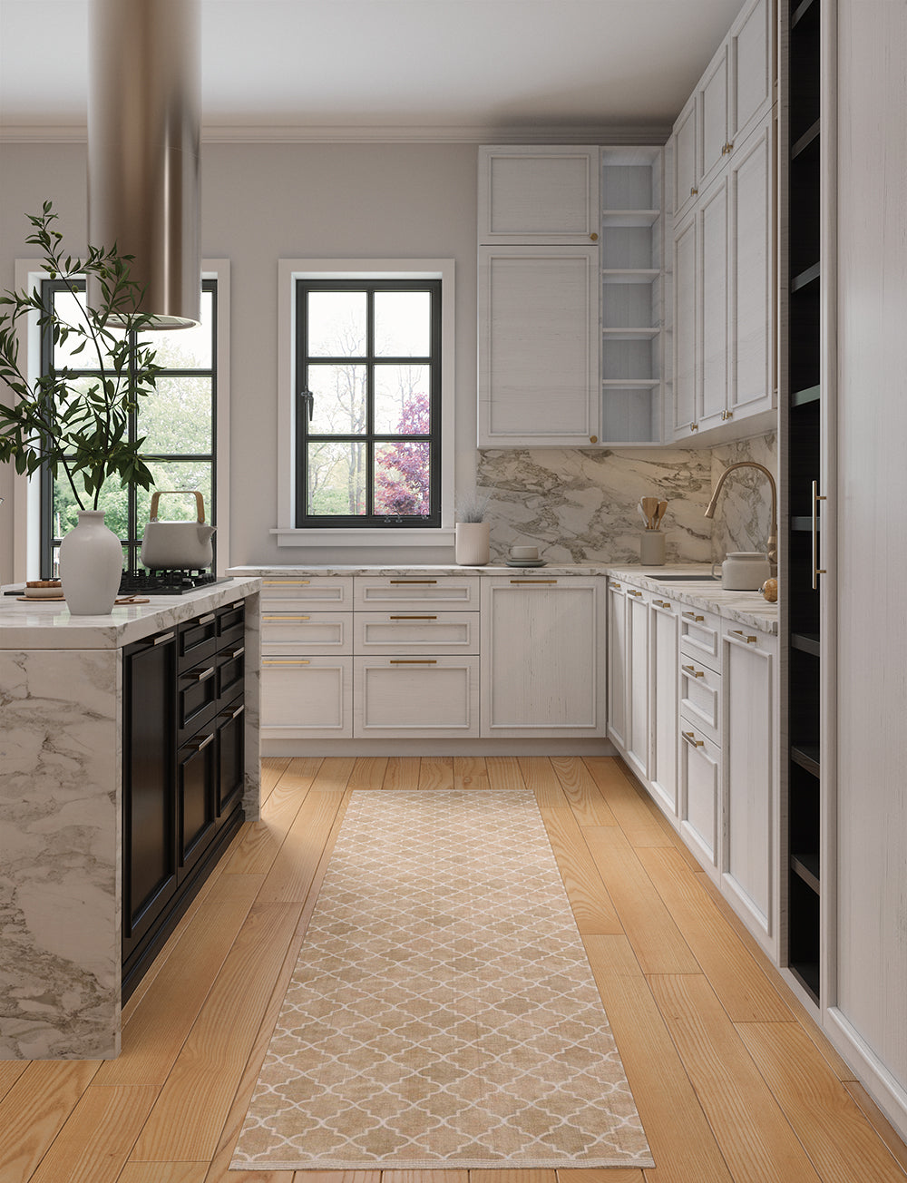 Kitchen: Enhance your medium or large kitchen by placing the rug in front of the sink or on either side of the kitchen island. You can also use it beneath smaller tables in your kitchen dining area for a delightful touch.