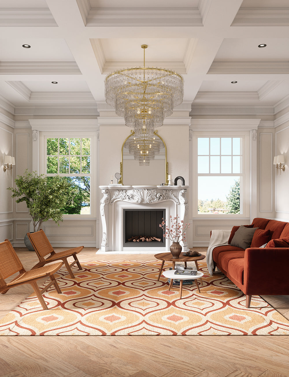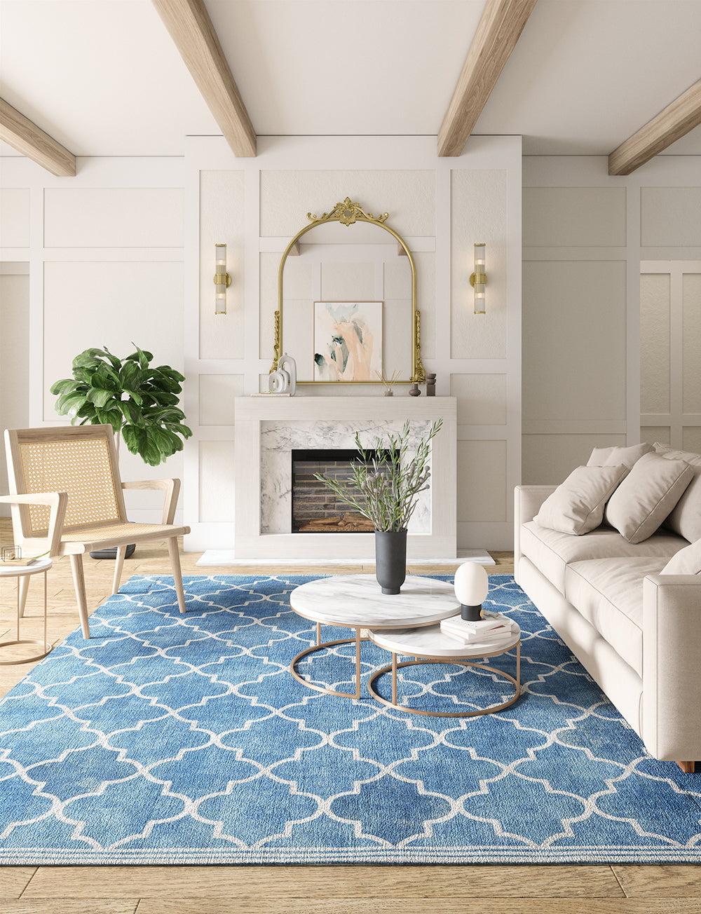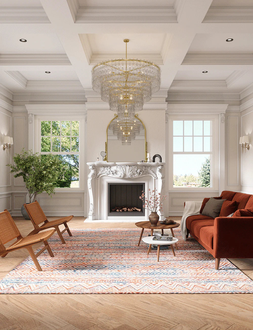 Living Room: Transform your small living room with a 5'x7' rug that covers most of the floor space. In medium-sized living rooms, place it under the coffee table, allowing the front legs of the couch to rest off the rug. For larger living rooms, use the rug to define cozy sections like a reading nook or a sitting area by the fireplace.