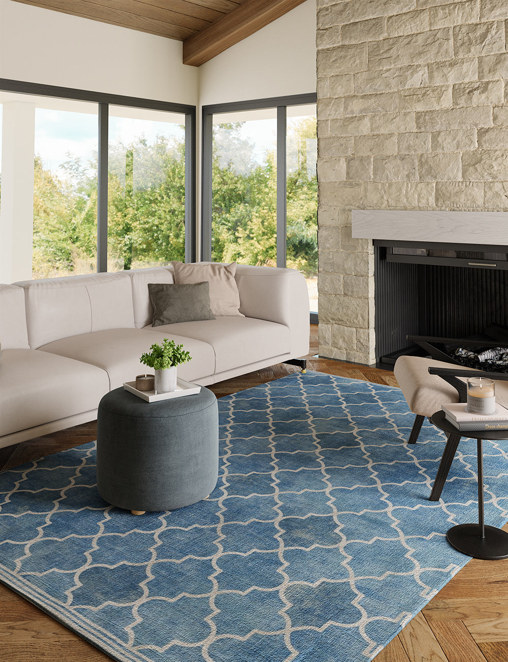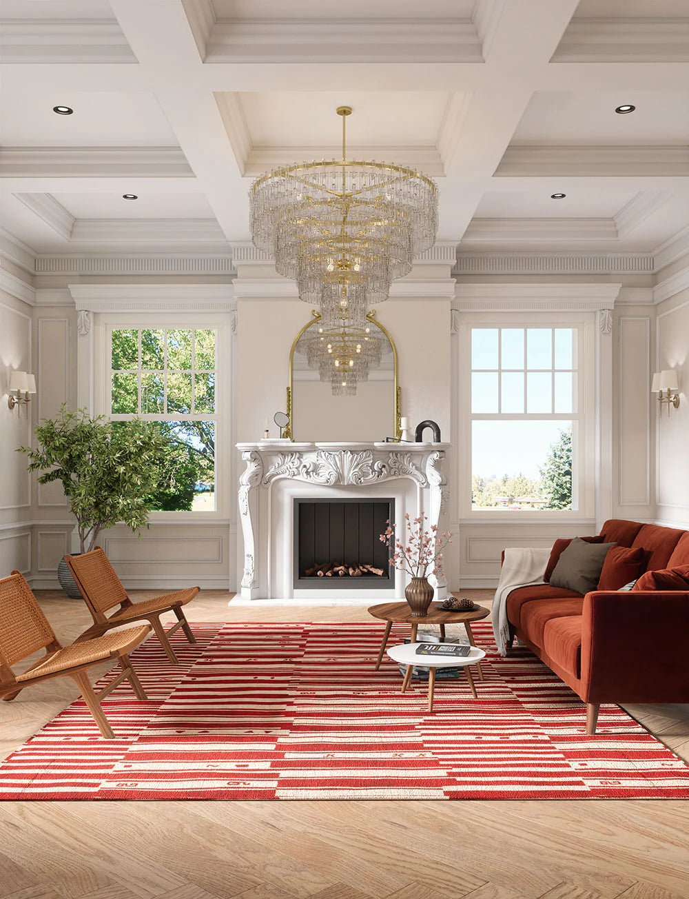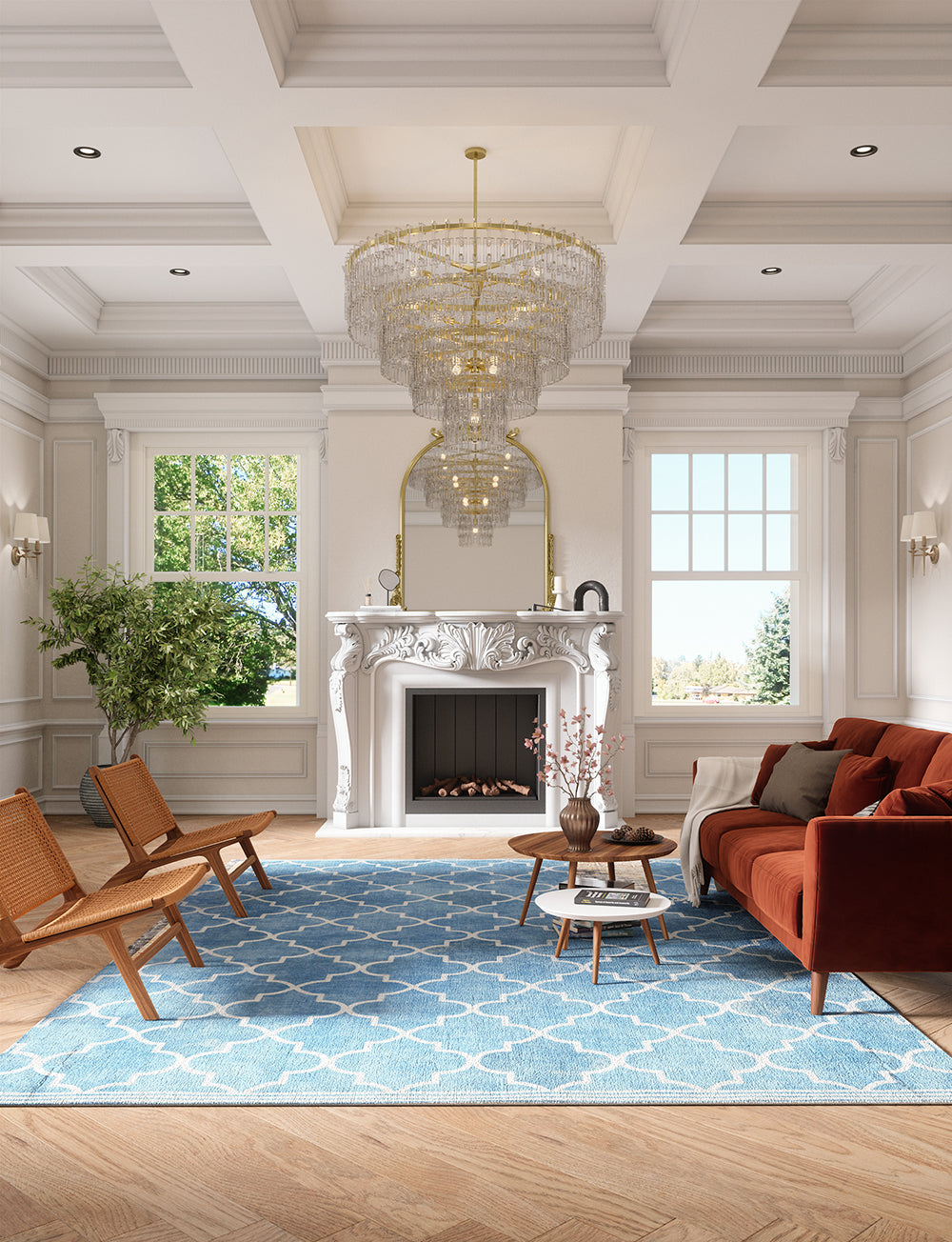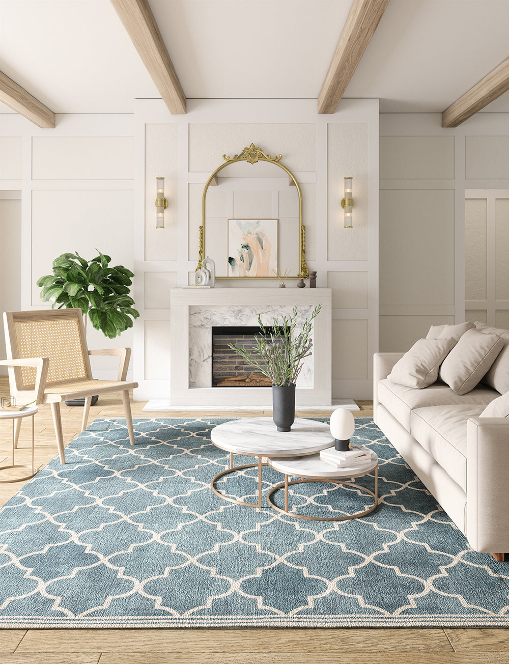 Living Room: Transform your small living room with a 5'x7' rug that covers most of the floor space. In medium-sized living rooms, place it under the coffee table, allowing the front legs of the couch to rest off the rug. For larger living rooms, use the rug to define cozy sections like a reading nook or a sitting area by the fireplace.