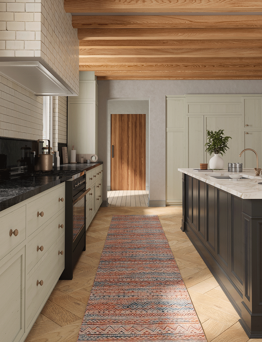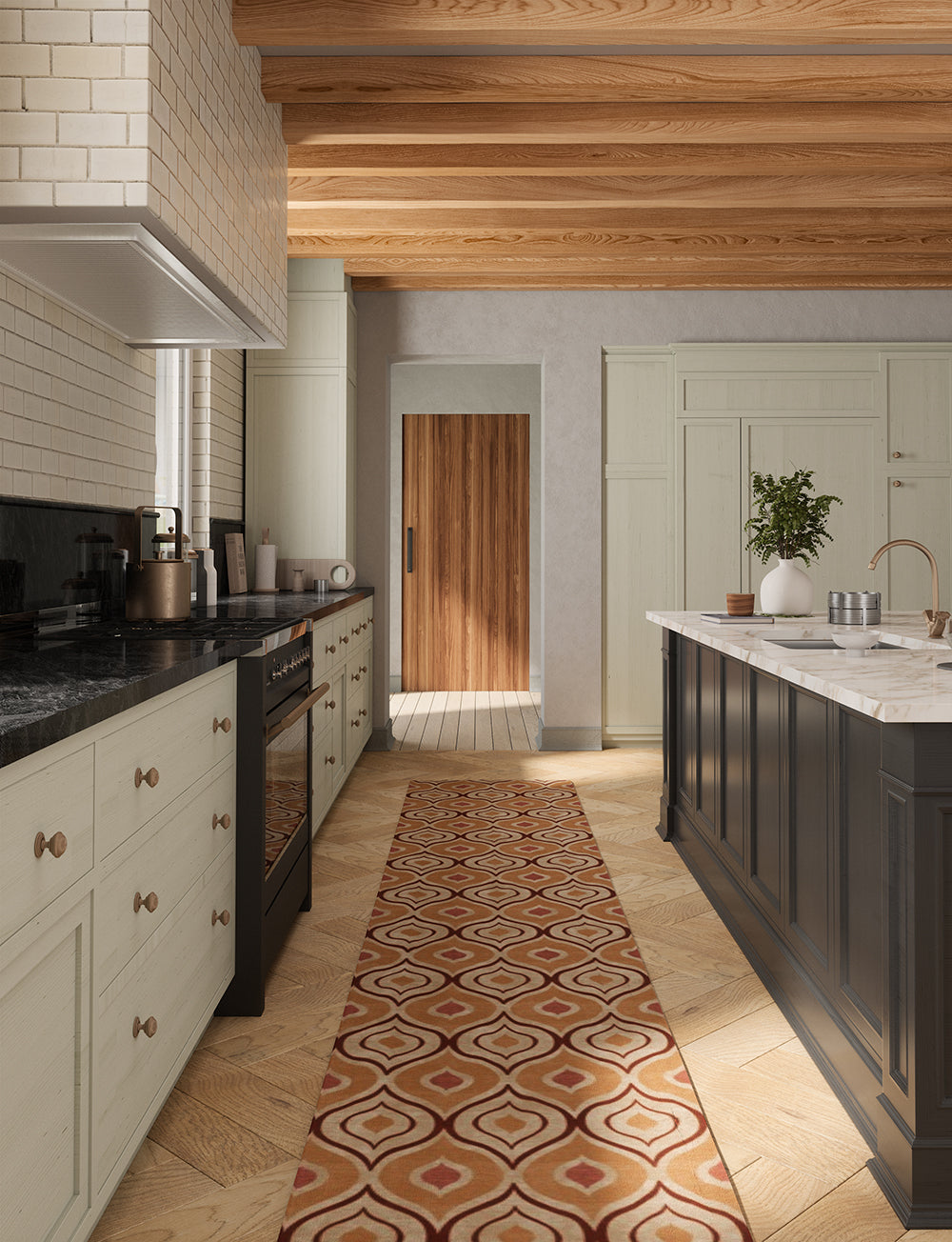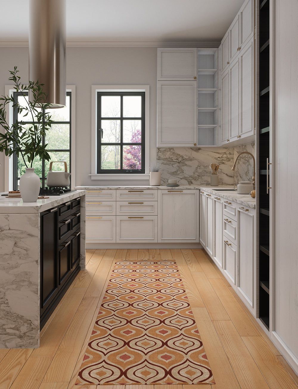 Kitchen: Enhance your medium or large kitchen by placing the rug in front of the sink or on either side of the kitchen island. You can also use it beneath smaller tables in your kitchen dining area for a delightful touch.