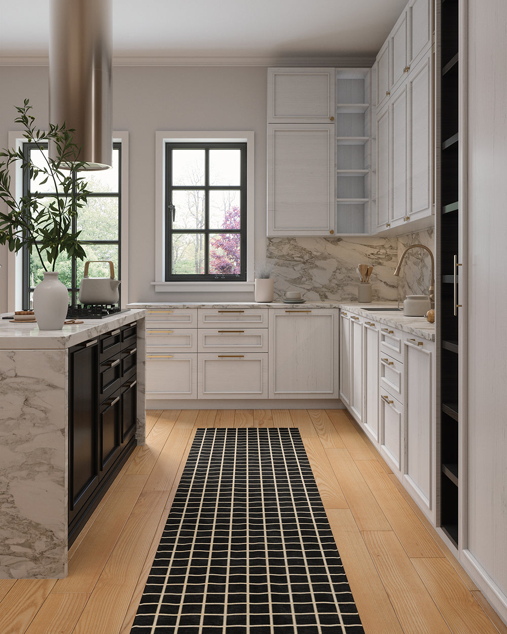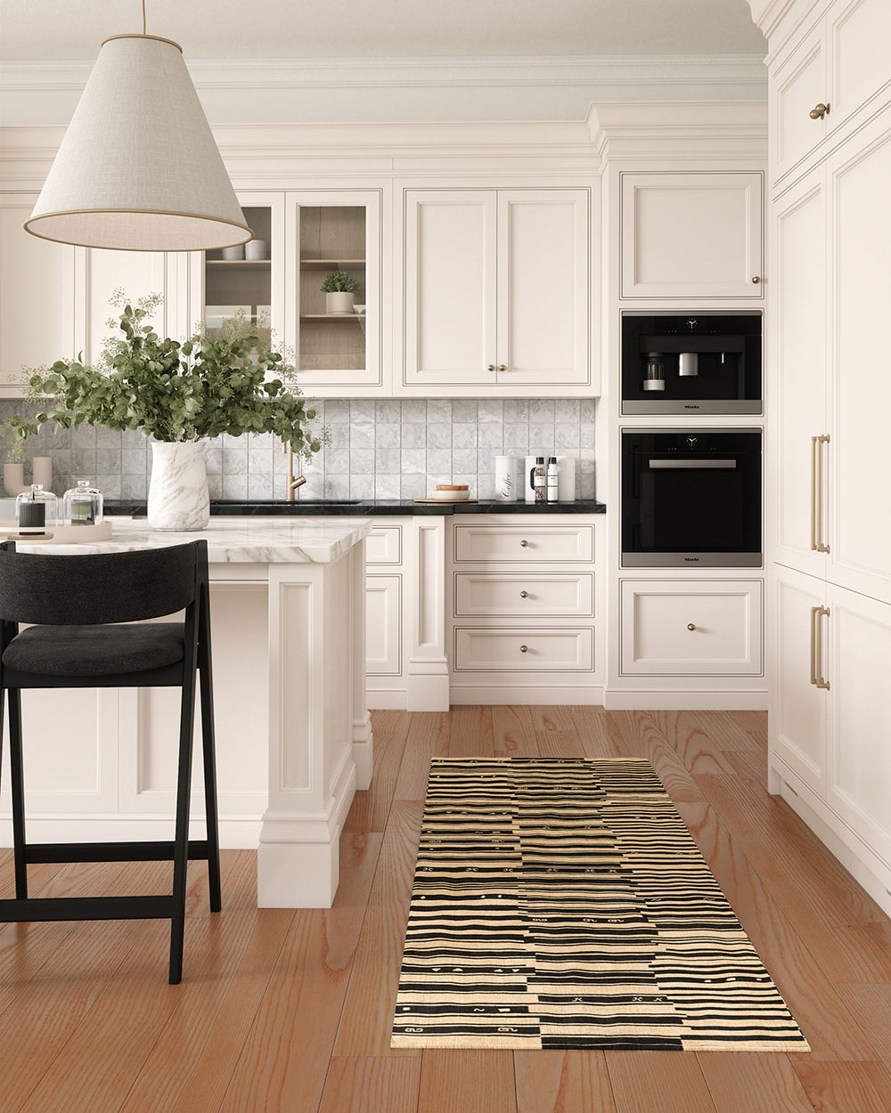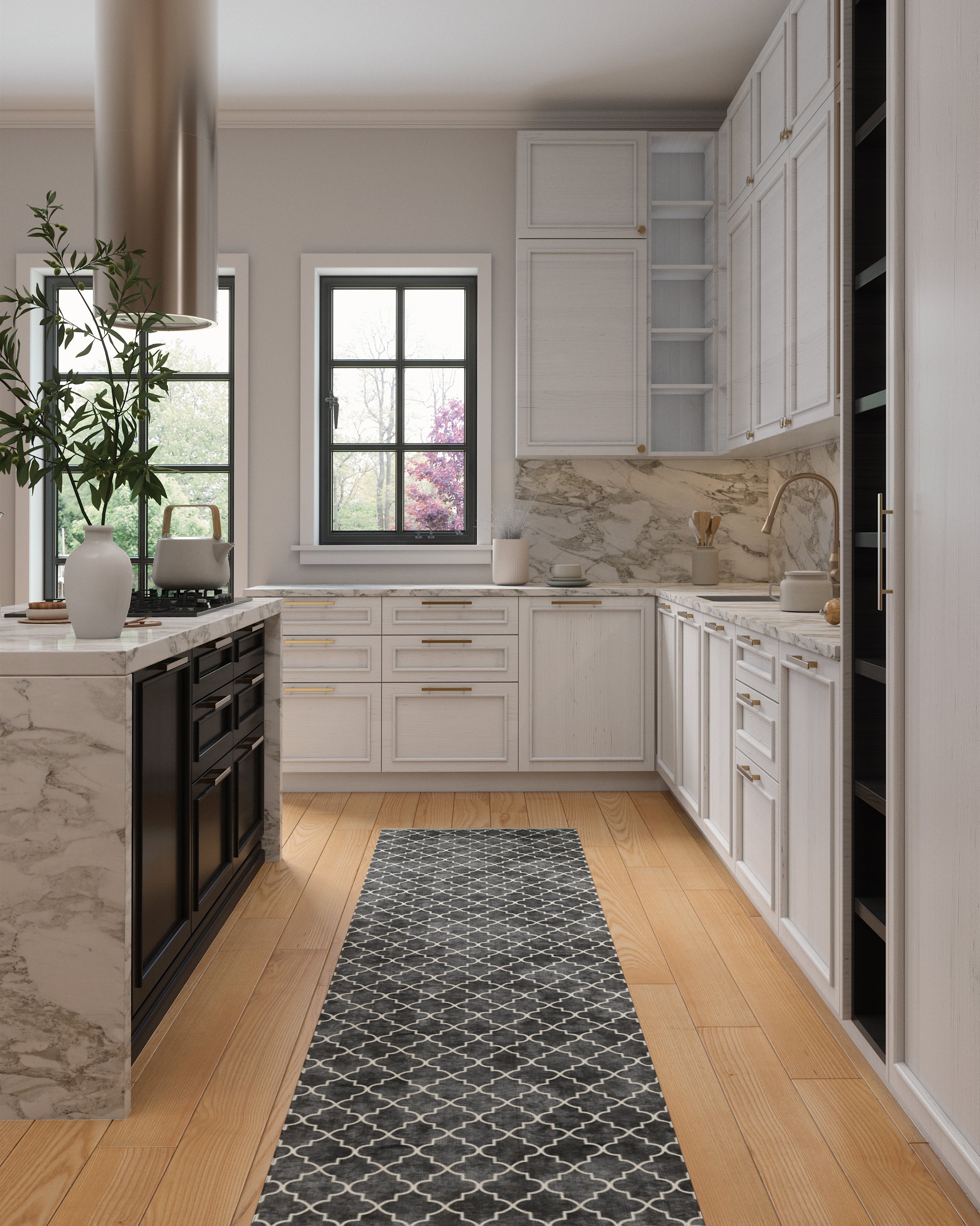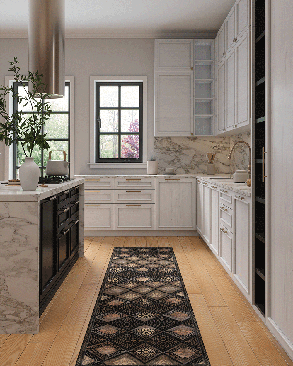 Black stands out as a versatile and fashionable choice when it comes to selecting furnishings for your space, and black area rugs and runners are no exception. With a black rug, you have the freedom to experiment with various prints, colors, and furniture arrangements to suit your desired theme or ambiance. The practicality of black rugs also shines through, as they can draw attention to specific areas, accentuate decor or furniture pieces, and cleverly conceal flaws and stains in high-traffic zones. No matter which room you choose to adorn with a black rug, you can be certain that it will infuse depth and style into the space.
