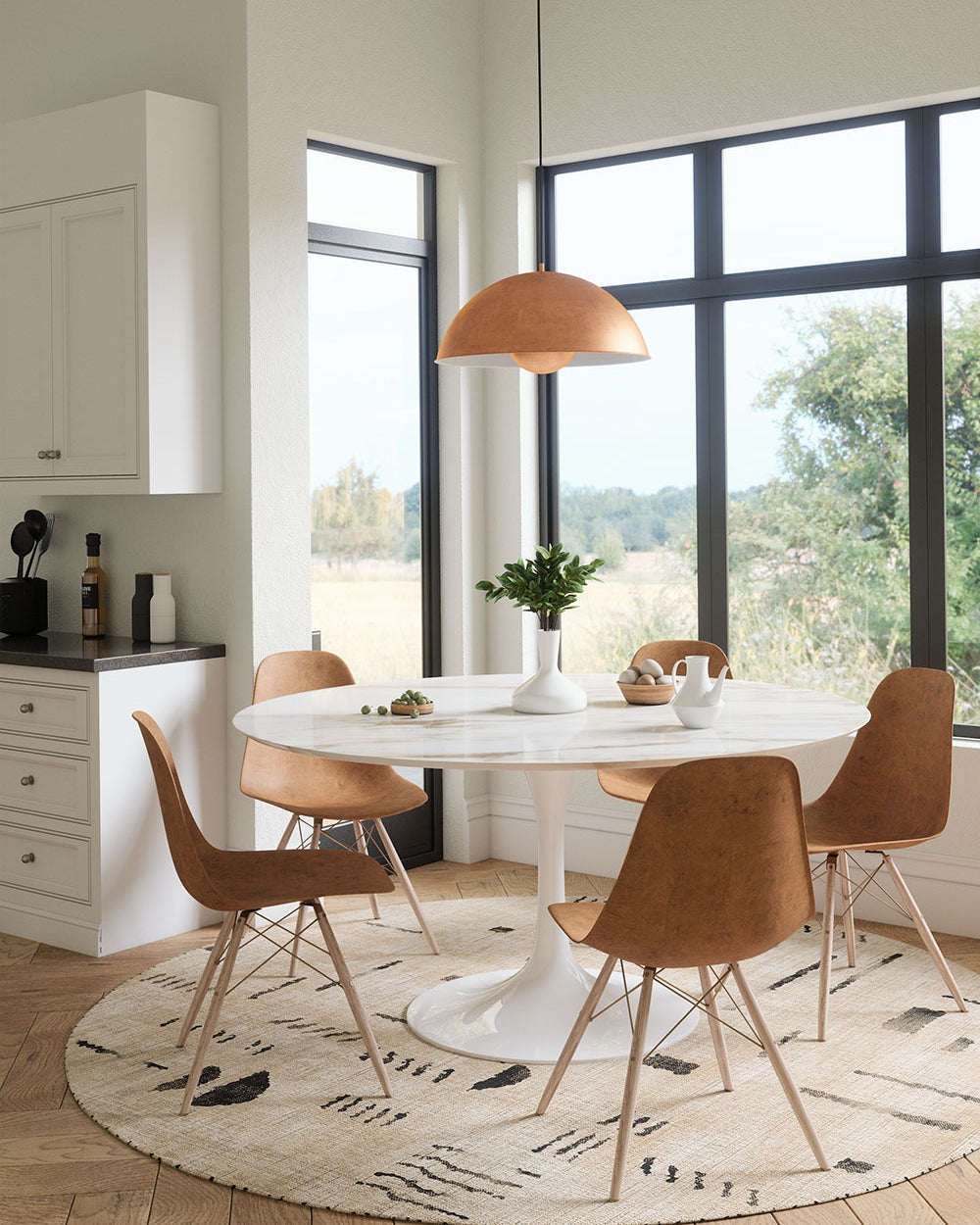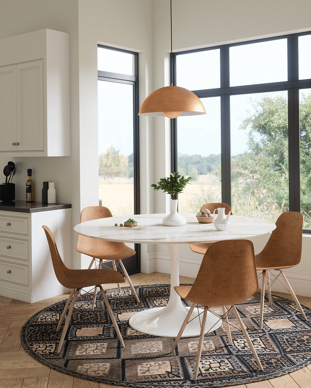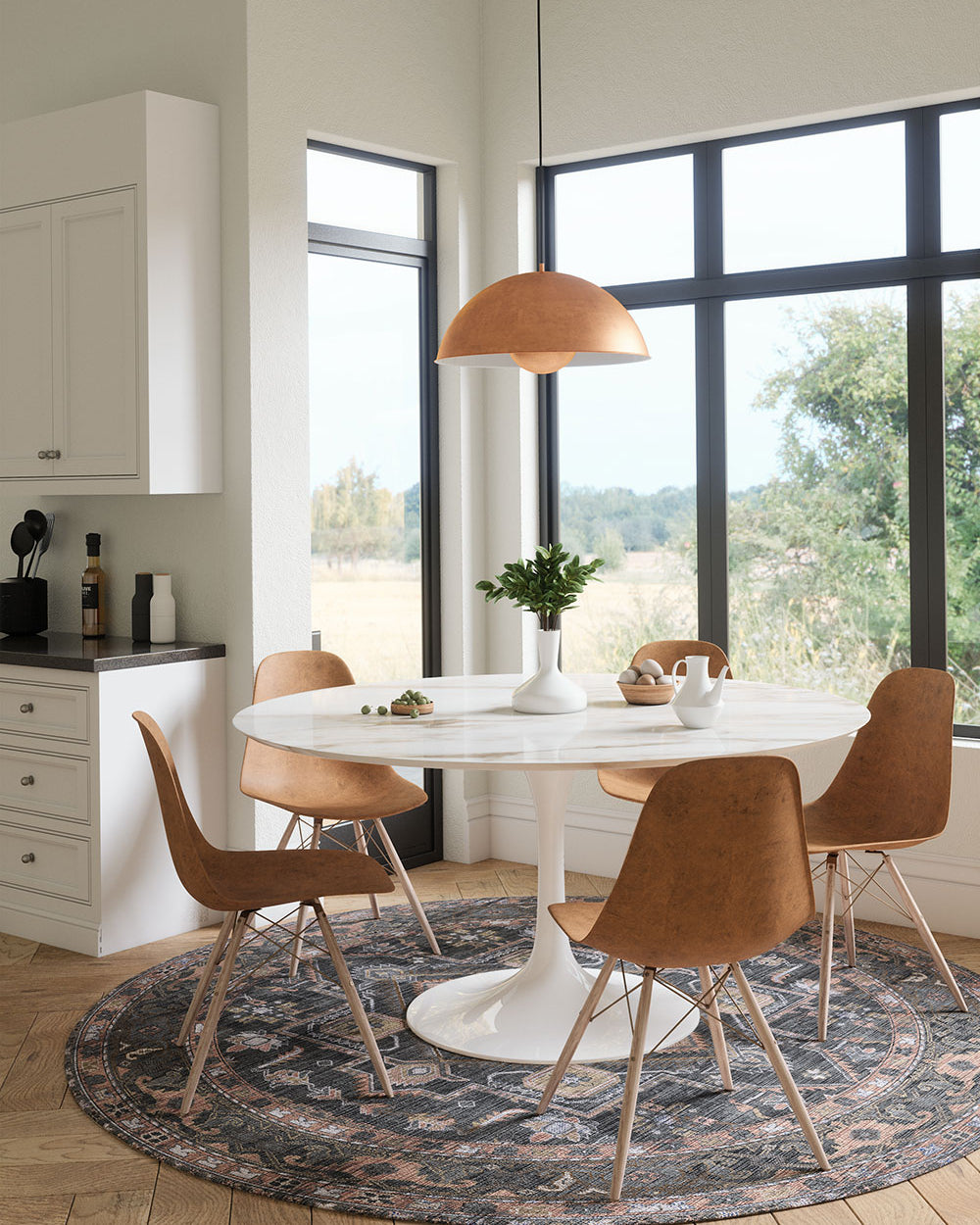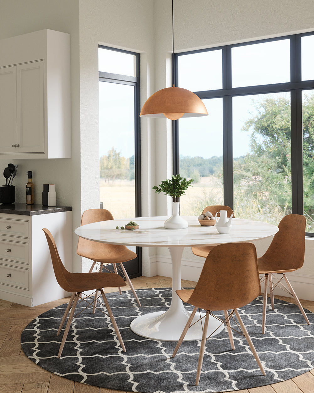 In the Dining Room: Elevate your dining room by adding a black area rug beneath the dining table. Versatile for all occasions, a black dining room rug imparts a sense of sophistication and uniqueness to the space.