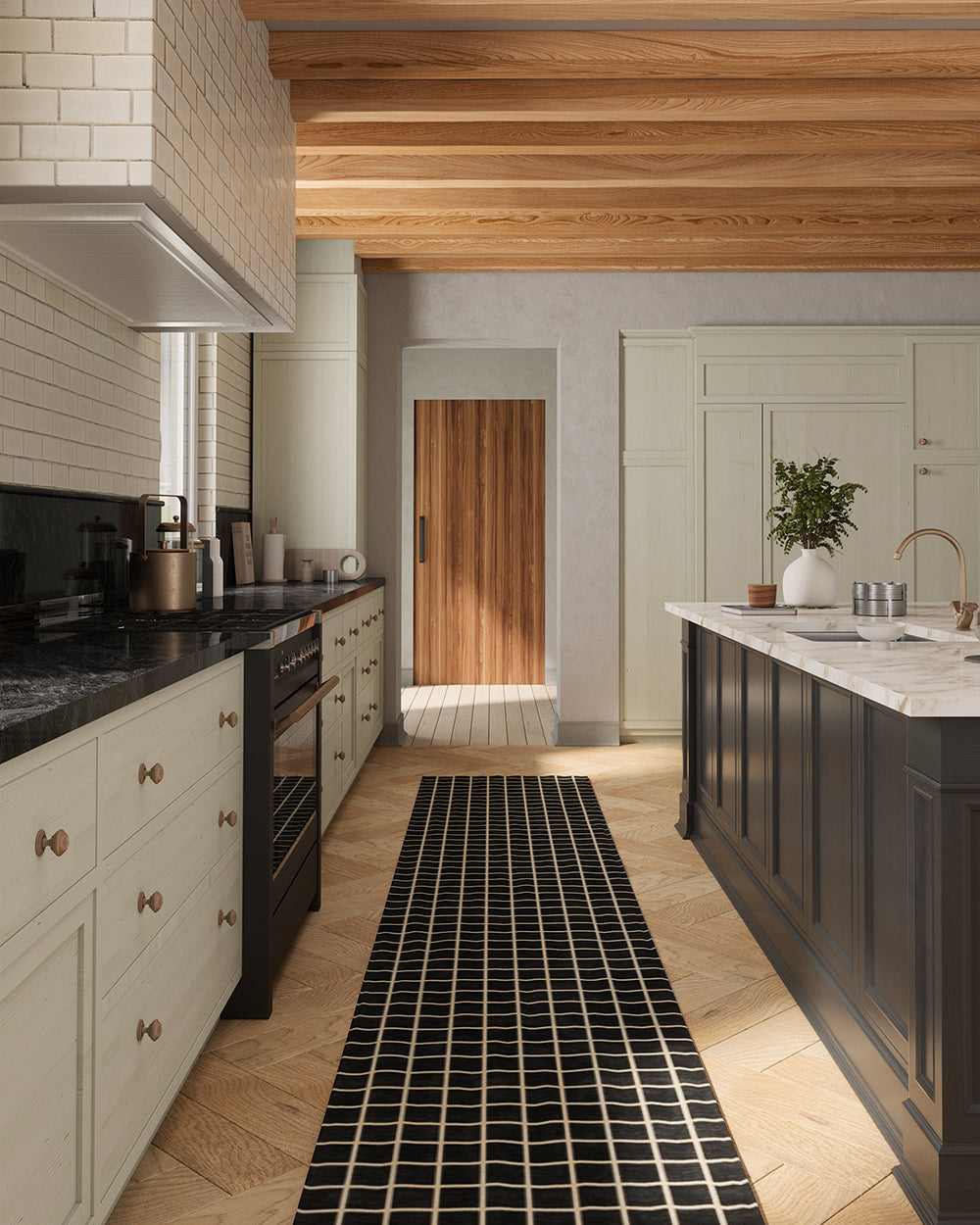 In the Entryway: Extend a glamorous welcome to your guests with an effortlessly chic black rug. Opt for a black round rug or a small black rug that is resistant to dirt. Additionally, black runners work well in this area, particularly if your entryway leads into a long hallway.