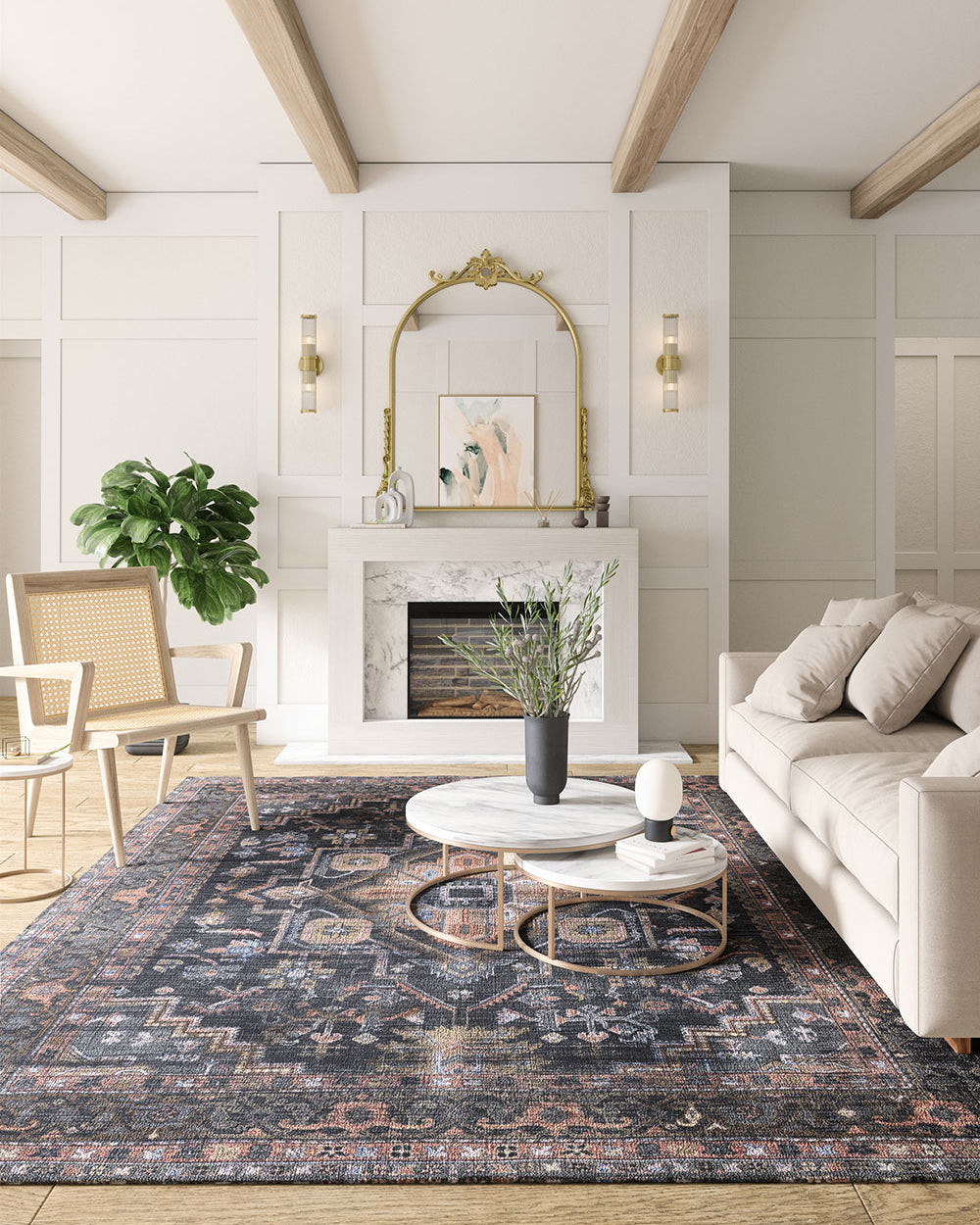 Incorporating black rugs into your home décor is an excellent choice for infusing a sense of elegance. These rugs serve as an ideal focal point, elevating the overall ambiance of any room, while also harmonizing seamlessly with other colors in your décor. Moreover, black rugs are low-maintenance and, when properly cared for, can endure for years, making them a long-lasting investment in both style and functionality.