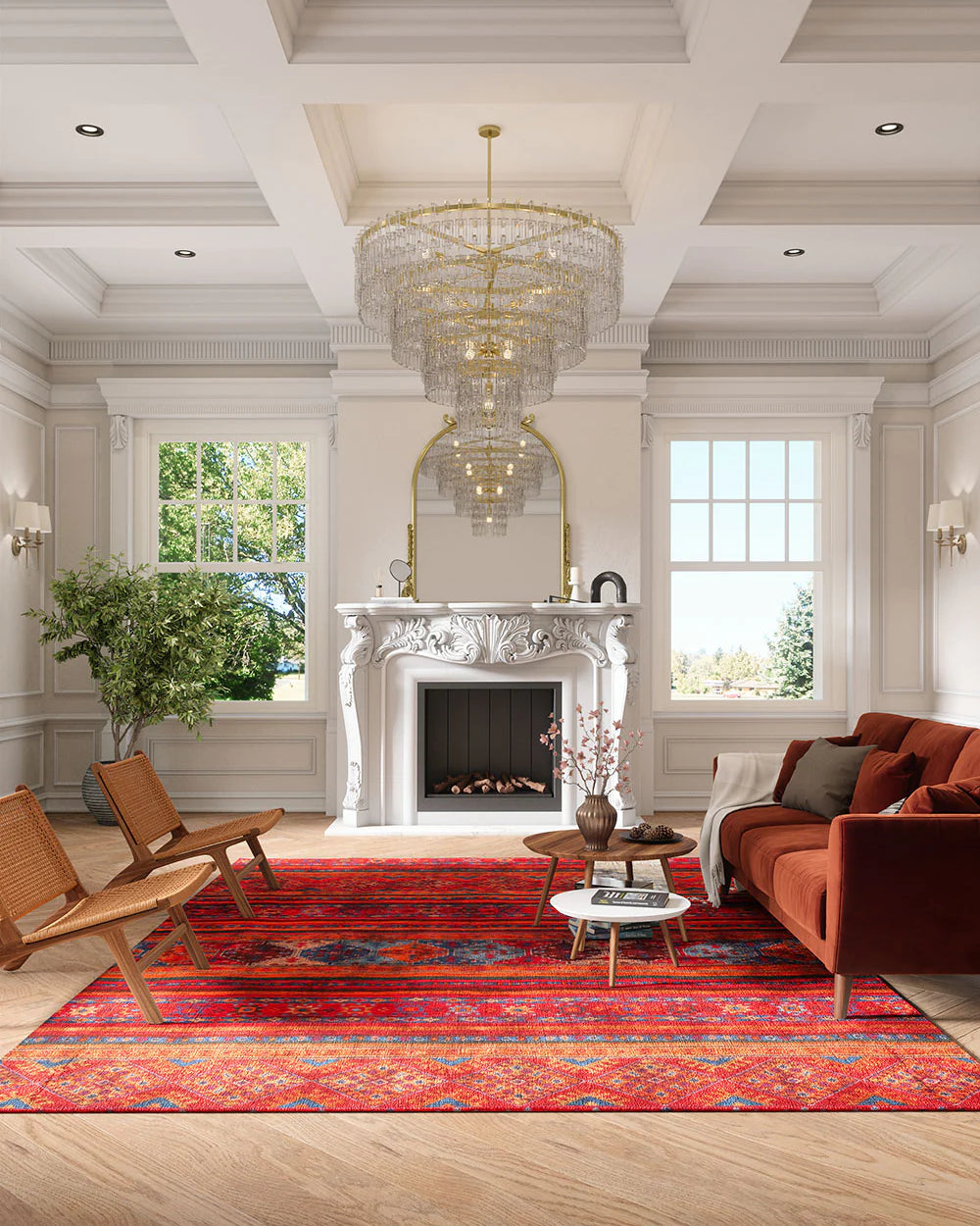 Transition seamlessly from Boho to ultra-modern home decor with our exquisite Moroccan rugs, proudly named Sibel and Farah in honor of the influential Farah Pahlavi. As the queen consort of Iran from 1961 to 1979, Farah revived the prominence of traditional, customary, and intricately embellished designs in both fashion and home decor. Our timeless Moroccan rugs, adorned with jeweled-tones, strike the perfect balance between classic elegance and contemporary style, making them a versatile choice for any space, whether you prefer ornate or minimalist accents.