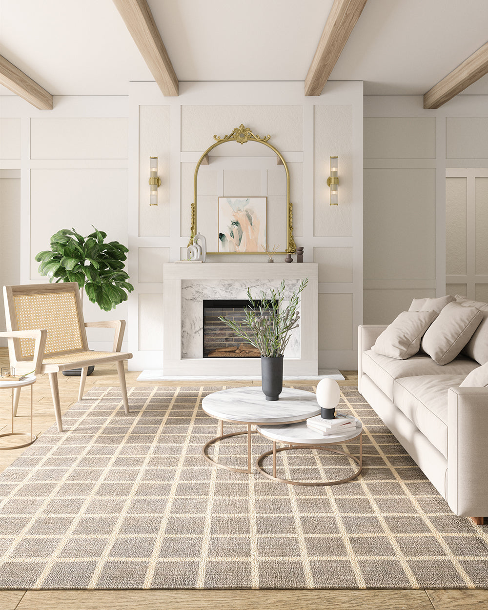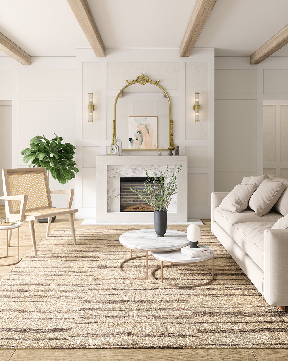 To achieve a minimalist or monochromatic look, choose a rug with a contemporary or modern print to maintain visual interest. For a coastal or beach-inspired ambiance, opt for warm neutrals with natural textures and weaves, creating a laidback and casual vibe. In rooms with bursts of color and mixed patterns, a neutral rug acts as a balancing element, preventing the space from feeling overwhelming.