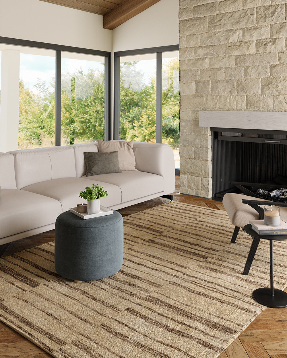 Create an atmosphere of understated elegance with natural and neutral-colored rugs, featuring shades like tan and beige. These rugs serve as the perfect backdrop for any decor style, effortlessly blending with other neutral tones such as white, cream, or grey. They can either tie a room together or fade into the background when paired with bolder elements.