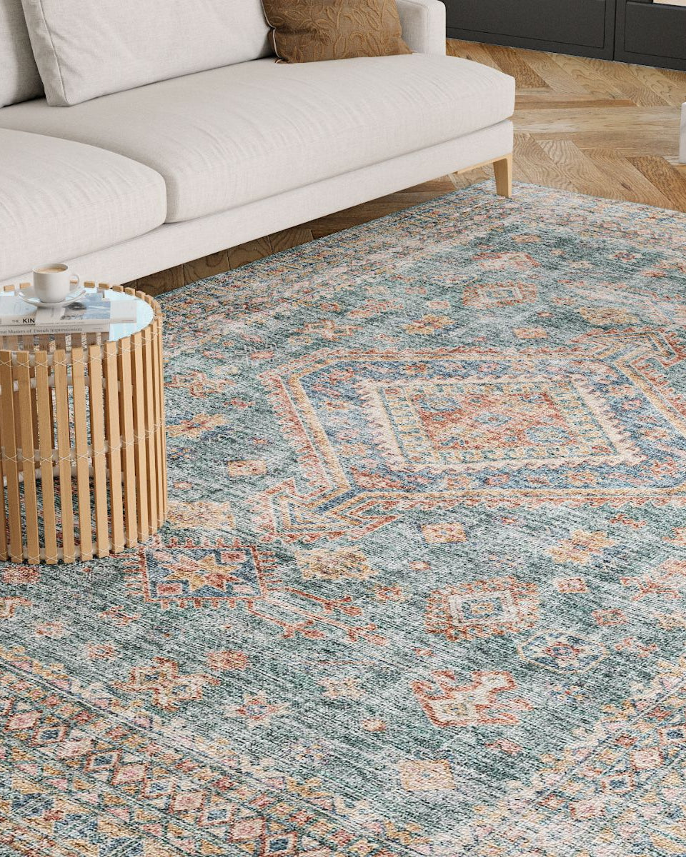 Introducing our incredible washable rugs that are stain-resistant, water-resistant, and feature a low-pile, lightweight design, making them an ideal match for your home washing machine—yes, even the 9x12 size!