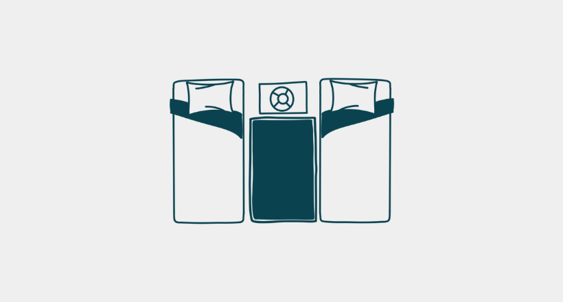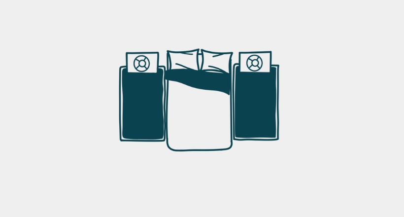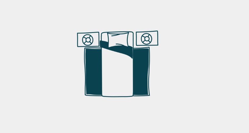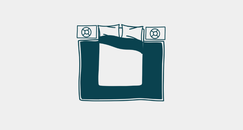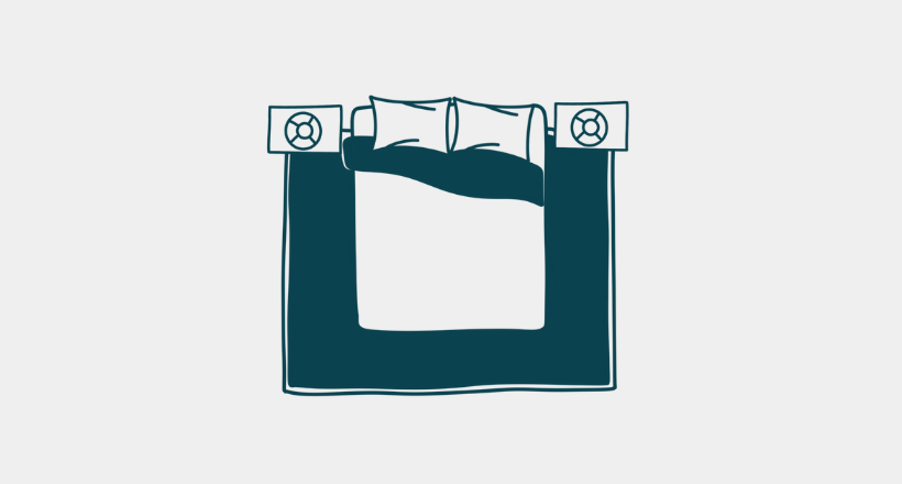 Covering a queen bed and nightstands, an 8'x10' rug provides 3' of rug on each side of the bed, while a 6'x9' rug offers an 18" border on both sides.