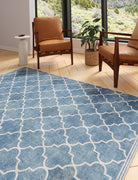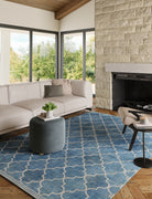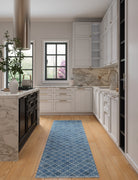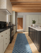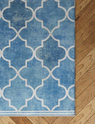 Atlas is a beautiful centerpiece with a Moroccan-inspired design and a range of sumptuous, saturated colors such as blue and vintage inspired faded white lines. It effortlessly pairs with many different rug pads, making it a versatile choice for any room .