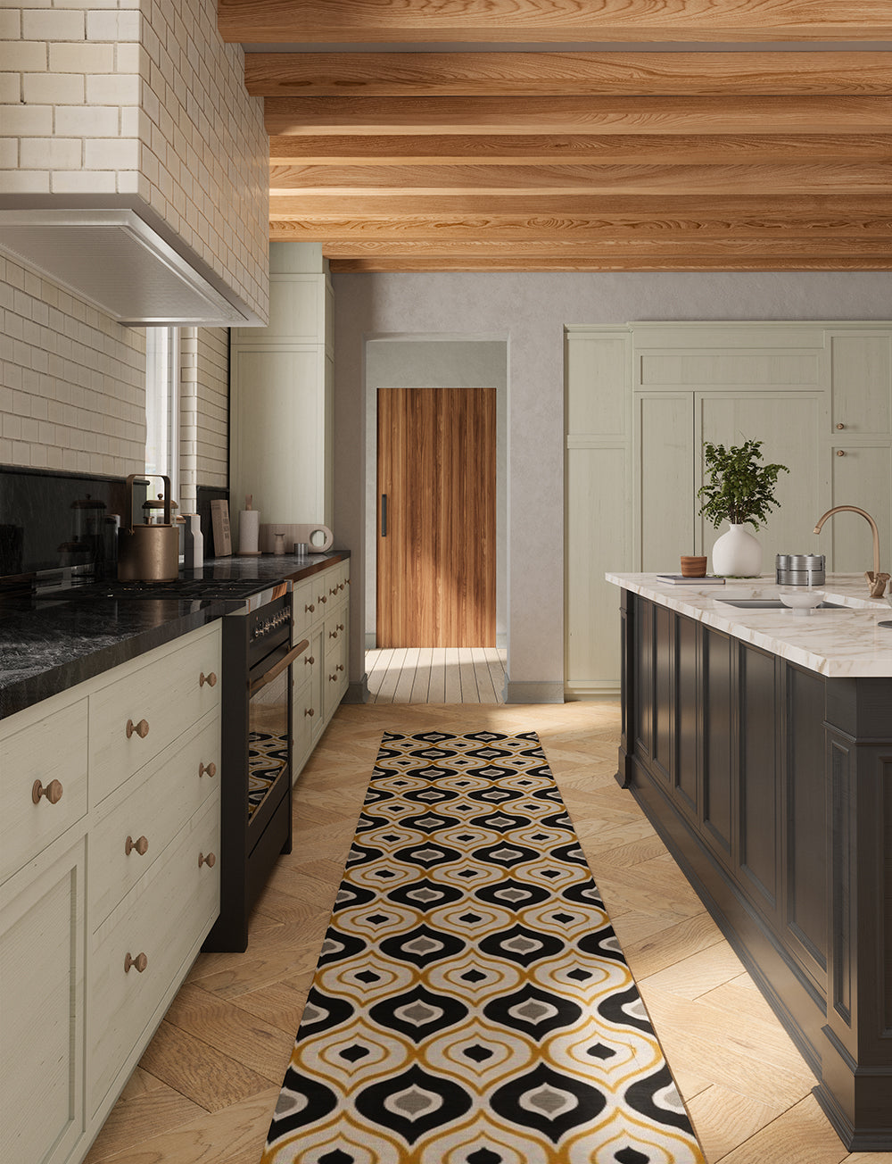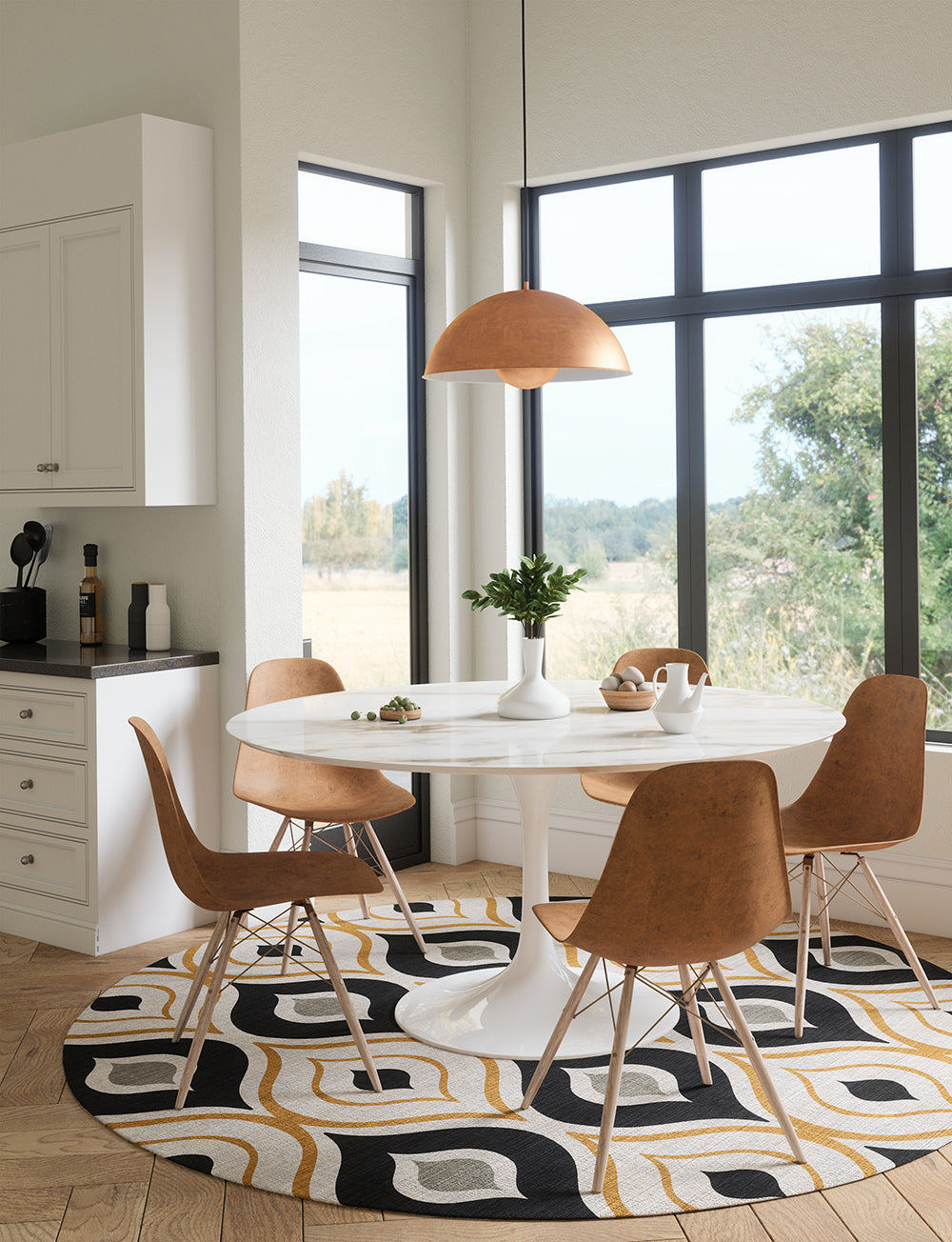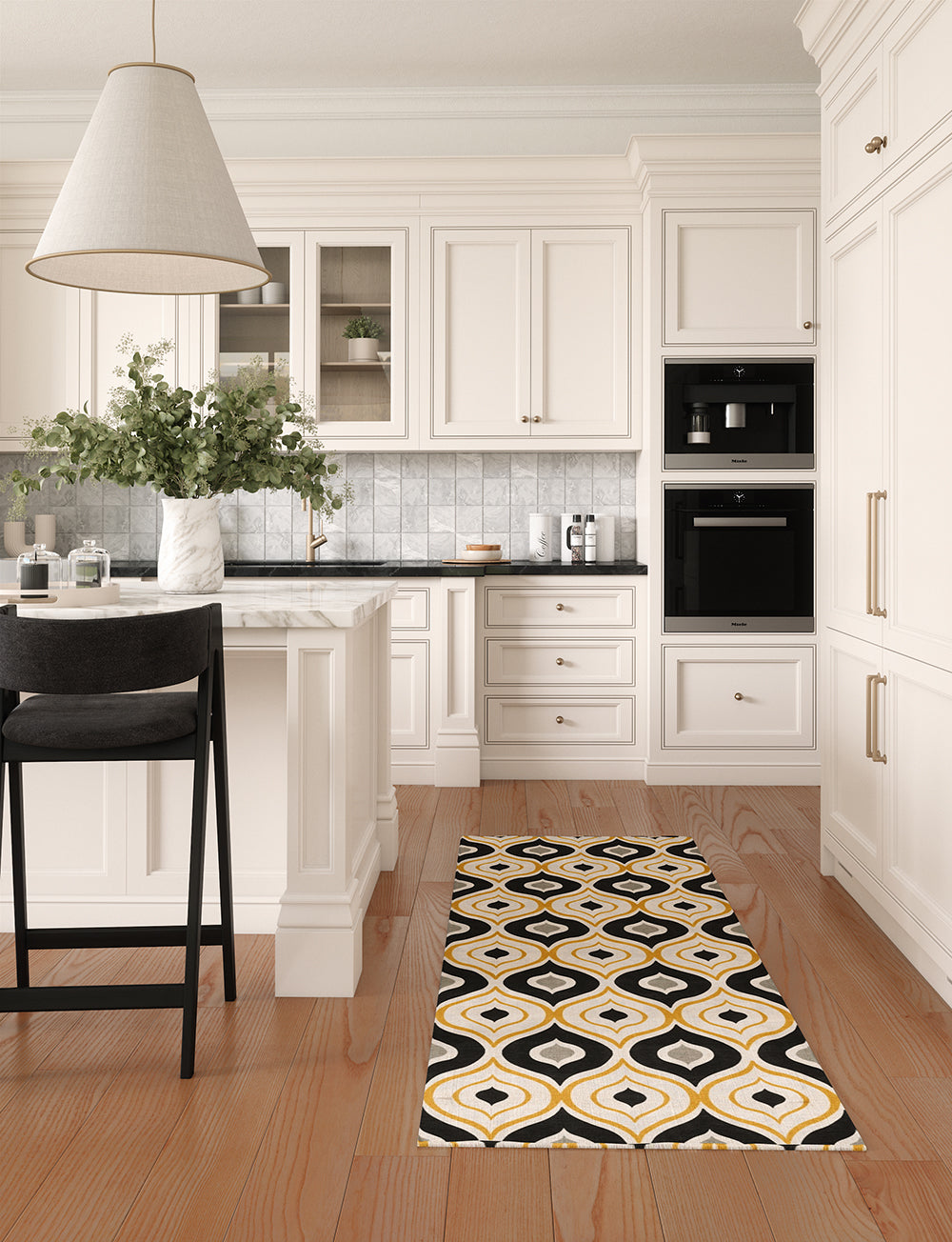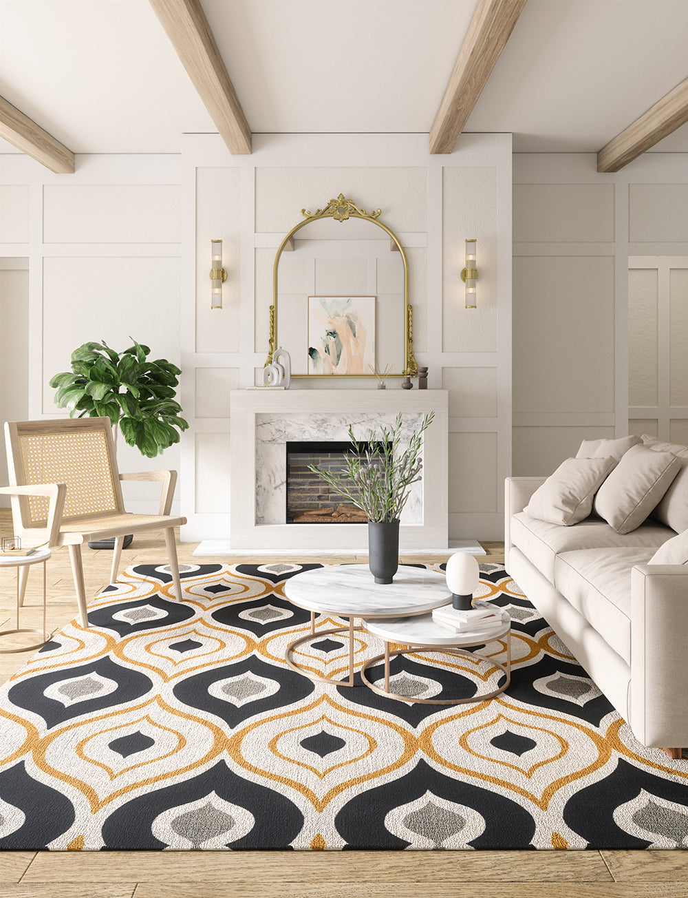 Benett is a beautiful centerpiece with a mid-century design and a range of beautiful colors such as black, yellow and beige. It effortlessly pairs with many different rug pads, making it a versatile choice for any room .
