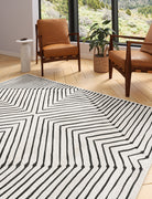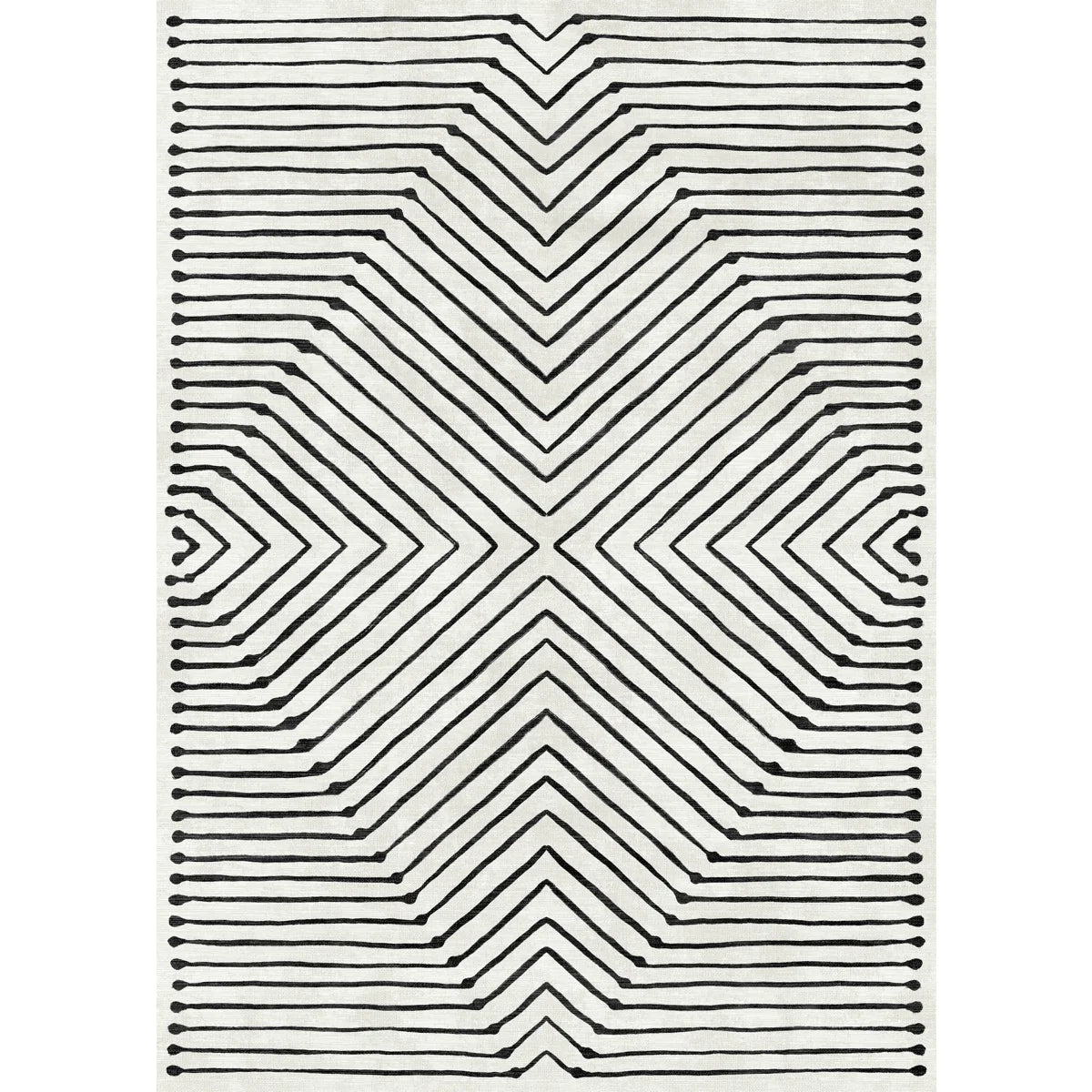 Calator is a beautiful centerpiece with a modern/minimalist-inspired design and a range of sumptuous, saturated colors such as ivory white and faded black lines. It effortlessly pairs with many different rug pads, making it a versatile choice for any room .