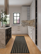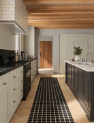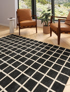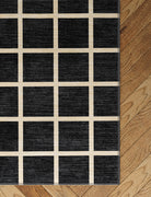 Caper is a beautiful centerpiece with a modern checkered design with back and white colors. It effortlessly pairs with many different rug pads, making it a versatile choice for any room .