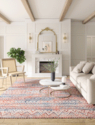When looking for a living room rug, consider your furniture and take note of the various layout options. If it’s an open floor plan, the rug should help define the space and improve the acoustics.