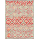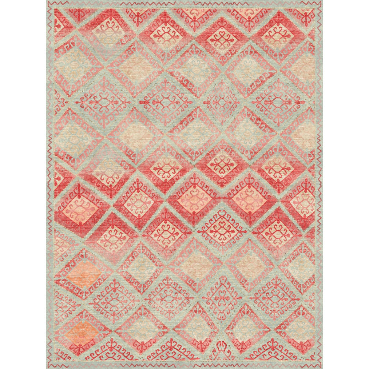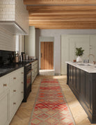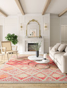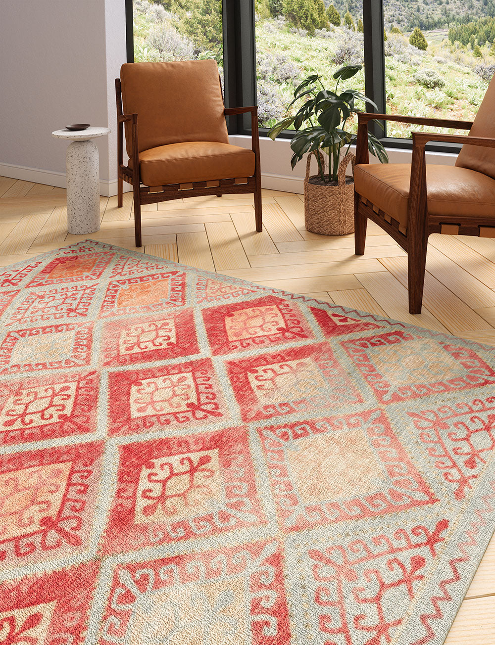 Kazna is a beautiful centerpiece with a boho design with a simple color mix of red, orange, and light teal. It effortlessly pairs with many different rug pads, making it a versatile choice for any room .