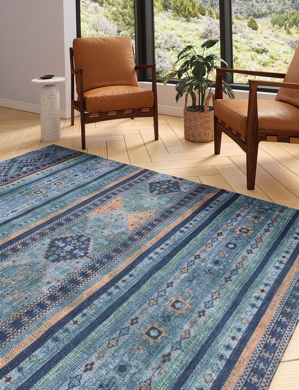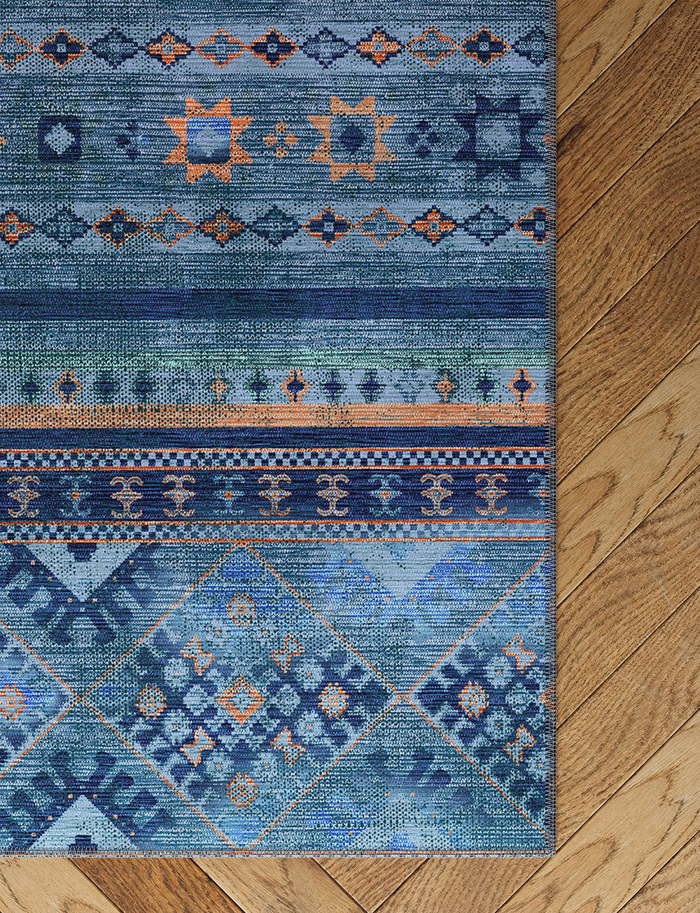 Lionelle is a beautiful centerpiece with a Persian-Moroccan design with a beautiful blue multicolor mix. It effortlessly pairs with many different rug pads, making it a versatile choice for any room .