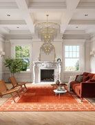 Mazela is a beautiful centerpiece with a Minimalist Persian design with a simple color mix of orange and ivory white. It effortlessly pairs with many different rug pads, making it a versatile choice for any room .