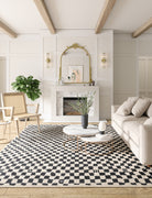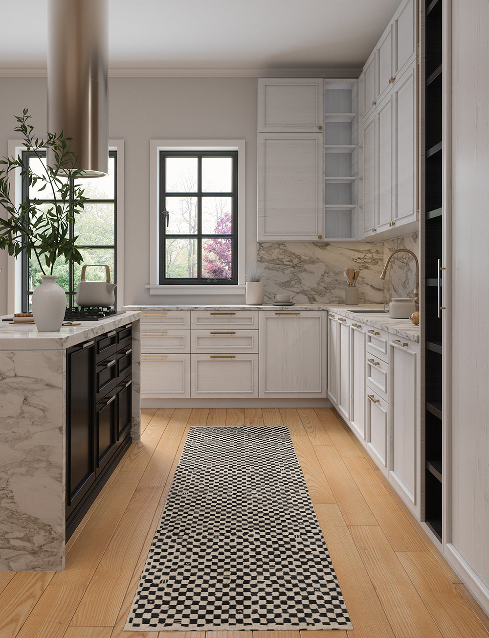 Metro is a beautiful centerpiece with a moroccan/checkered/minimalist-inspired design and a range of sumptuous, saturated colors such as checkered black and white. It effortlessly pairs with many different rug pads, making it a versatile choice for any room .