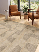 Puzla is a beautiful centerpiece with a Modern Geometric design with a simple color mix of light beige and dark beige. It effortlessly pairs with many different rug pads, making it a versatile choice for any room .