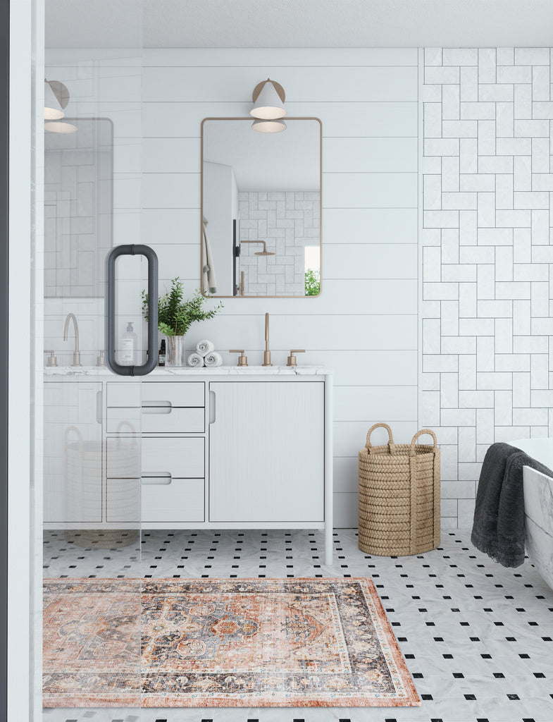 When looking for a living room rug, consider your furniture and take note of the various layout options. If it’s an open floor plan, the rug should help define the space and improve the acoustics.