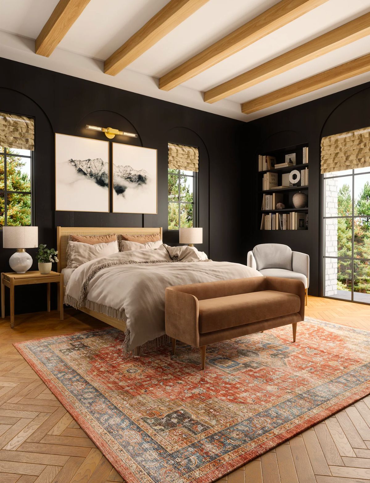 When looking for a living room rug, consider your furniture and take note of the various layout options. If it’s an open floor plan, the rug should help define the space and improve the acoustics.