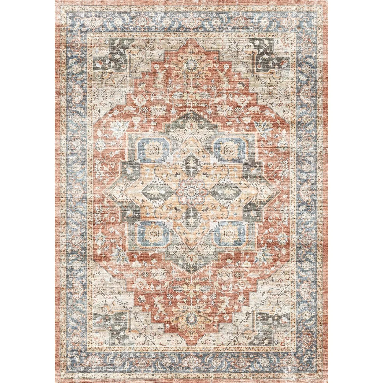 Rivka is a beautiful centerpiece with a Persian-inspired design and a range of sumptuous, saturated colors such as terracota and ocean blue. It effortlessly pairs with many different rug pads, making it a versatile choice for any room .