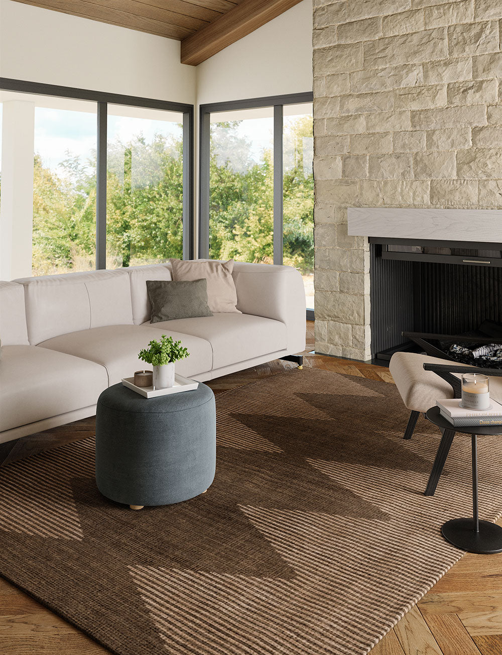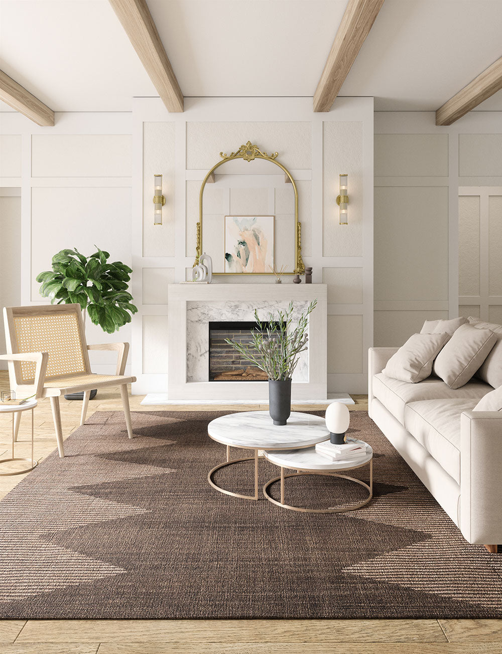 When looking for a living room rug, consider your furniture and take note of the various layout options. If it’s an open floor plan, the rug should help define the space and improve the acoustics.